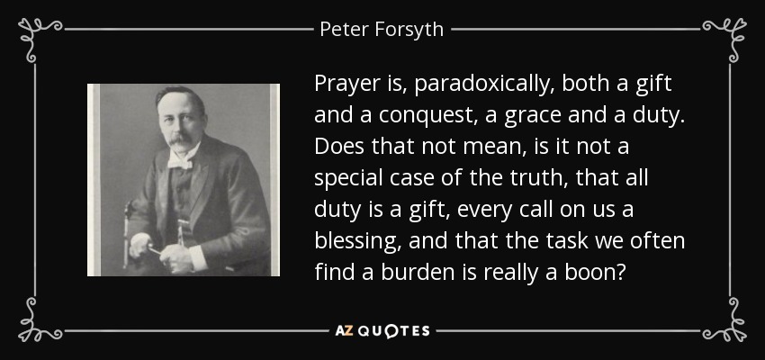 Prayer is, paradoxically, both a gift and a conquest, a grace and a duty. Does that not mean, is it not a special case of the truth, that all duty is a gift, every call on us a blessing, and that the task we often find a burden is really a boon?