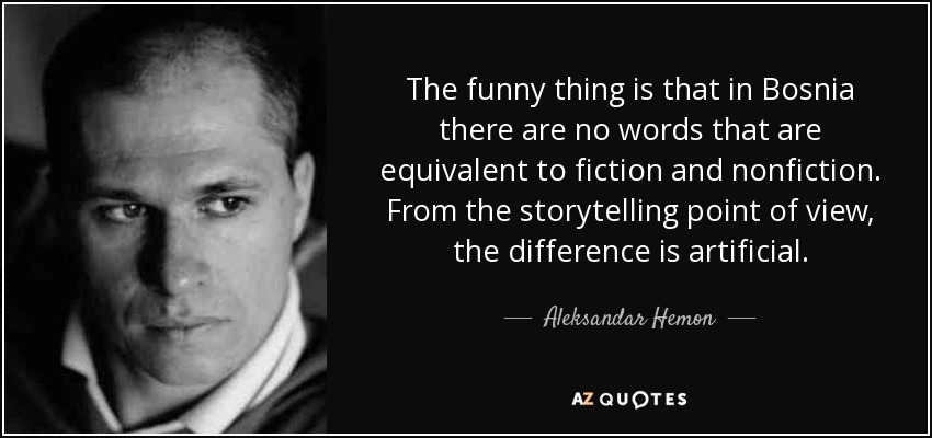The funny thing is that in Bosnia there are no words that are equivalent to fiction and nonfiction. From the storytelling point of view, the difference is artificial.