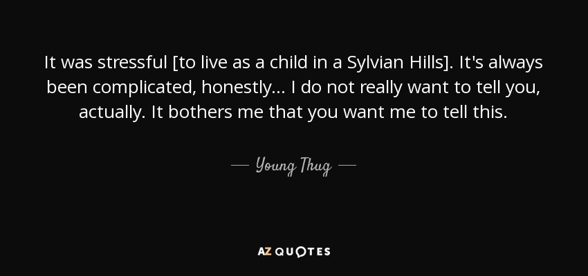 It was stressful [to live as a child in a Sylvian Hills]. It's always been complicated, honestly... I do not really want to tell you, actually. It bothers me that you want me to tell this.