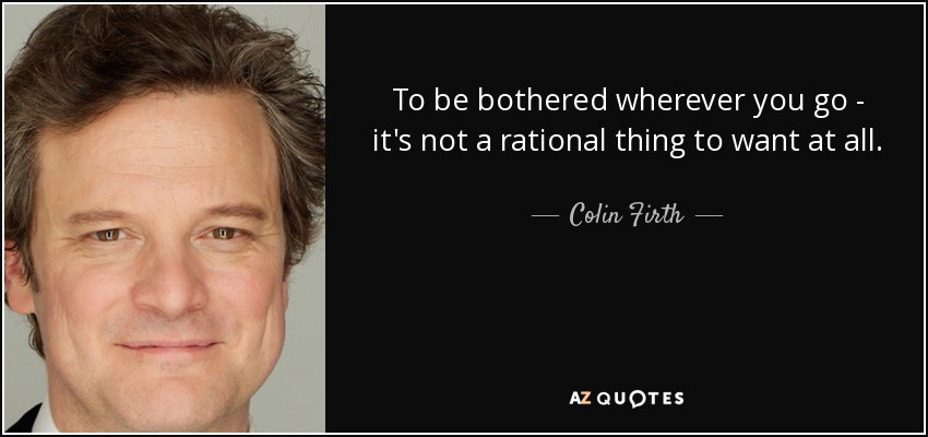 To be bothered wherever you go - it's not a rational thing to want at all.