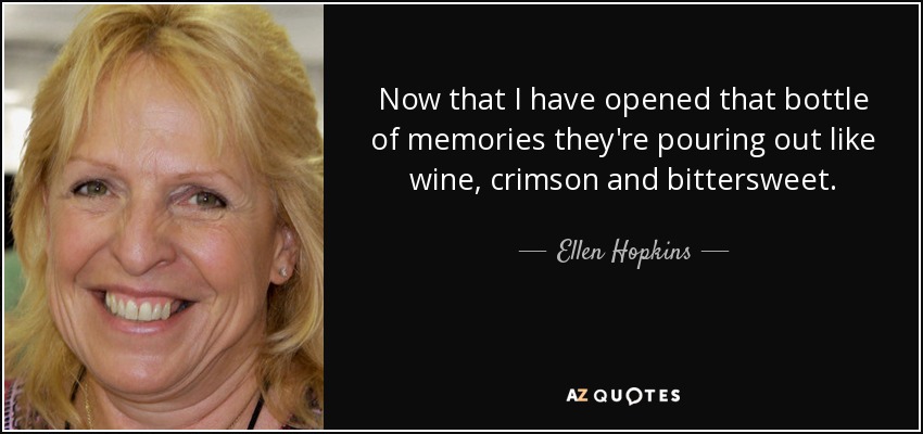 Now that I have opened that bottle of memories they're pouring out like wine, crimson and bittersweet.