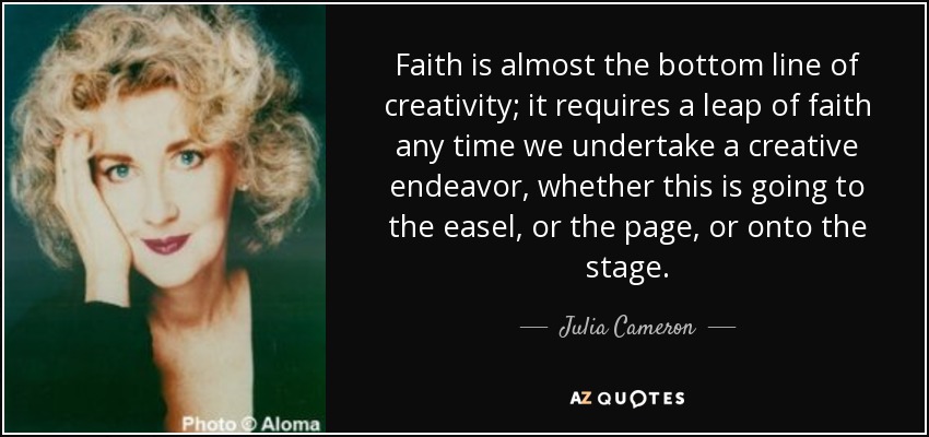 Faith is almost the bottom line of creativity; it requires a leap of faith any time we undertake a creative endeavor, whether this is going to the easel, or the page, or onto the stage.