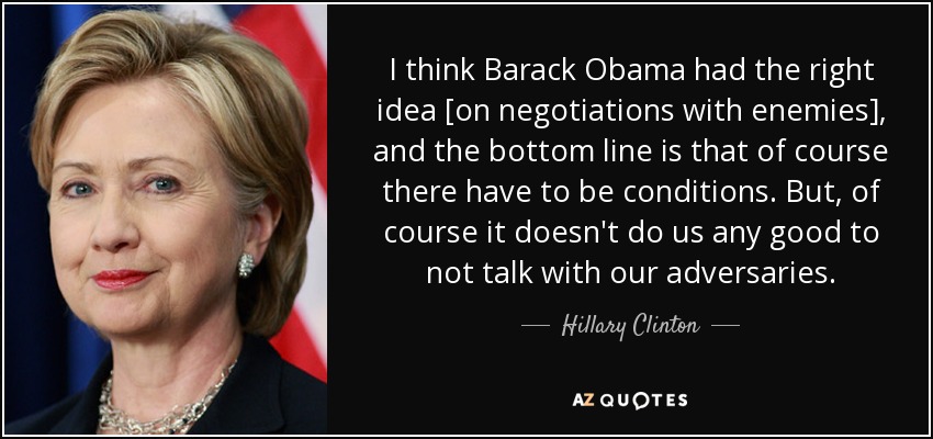 I think Barack Obama had the right idea [on negotiations with enemies], and the bottom line is that of course there have to be conditions. But, of course it doesn't do us any good to not talk with our adversaries.