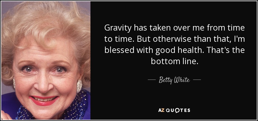 Gravity has taken over me from time to time. But otherwise than that, I'm blessed with good health. That's the bottom line.
