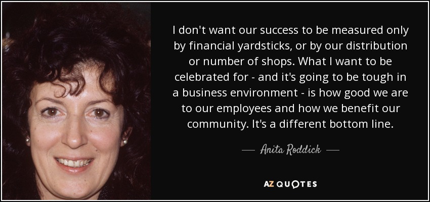 I don't want our success to be measured only by financial yardsticks, or by our distribution or number of shops. What I want to be celebrated for - and it's going to be tough in a business environment - is how good we are to our employees and how we benefit our community. It's a different bottom line.