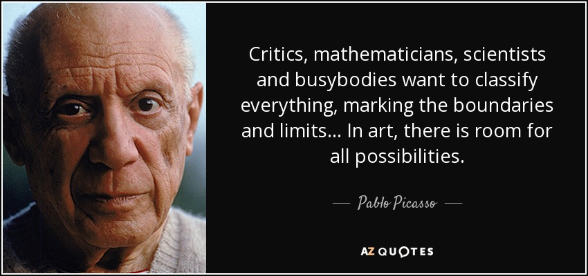 Critics, mathematicians, scientists and busybodies want to classify everything, marking the boundaries and limits... In art, there is room for all possibilities.