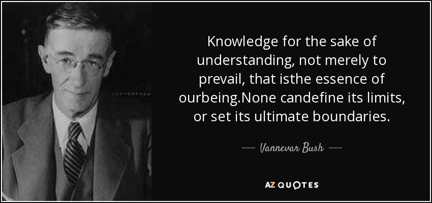 Knowledge for the sake of understanding, not merely to prevail, that isthe essence of ourbeing.None candefine its limits, or set its ultimate boundaries.