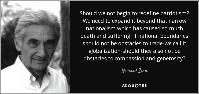 Should we not begin to redefine patriotism? We need to expand it beyond that narrow nationalism which has caused so much death and suffering. If national boundaries should not be obstacles to trade-we call it globalization-should they also not be obstacles to compassion and generosity?