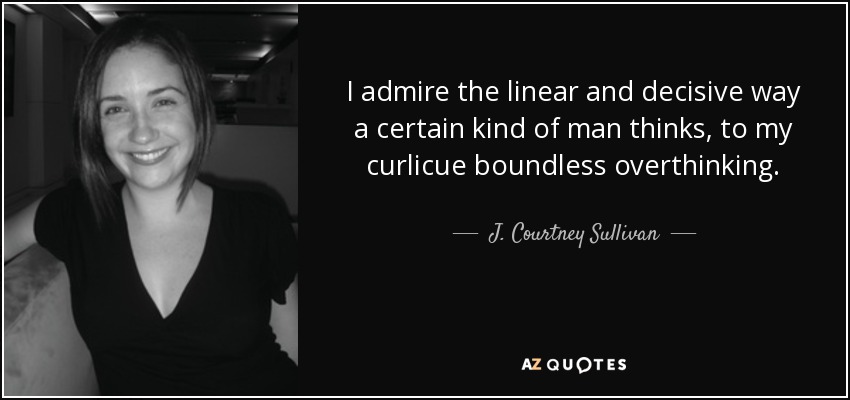 I admire the linear and decisive way a certain kind of man thinks, to my curlicue boundless overthinking.