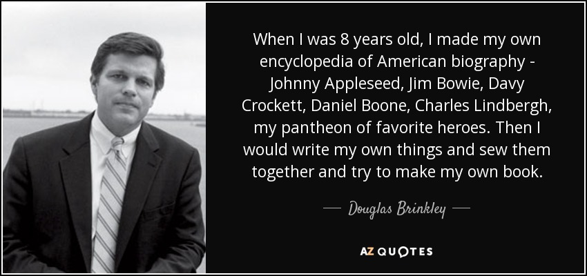 When I was 8 years old, I made my own encyclopedia of American biography - Johnny Appleseed, Jim Bowie, Davy Crockett, Daniel Boone, Charles Lindbergh, my pantheon of favorite heroes. Then I would write my own things and sew them together and try to make my own book.
