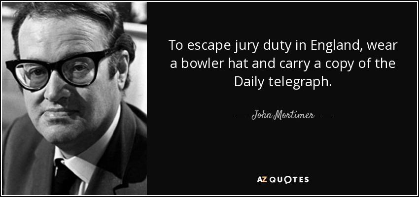 To escape jury duty in England, wear a bowler hat and carry a copy of the Daily telegraph.