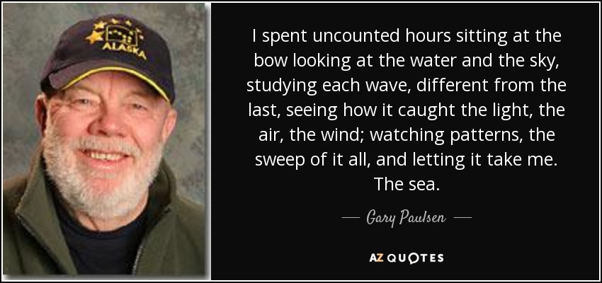 I spent uncounted hours sitting at the bow looking at the water and the sky, studying each wave, different from the last, seeing how it caught the light, the air, the wind; watching patterns, the sweep of it all, and letting it take me. The sea.