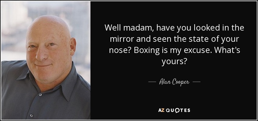 Well madam, have you looked in the mirror and seen the state of your nose? Boxing is my excuse. What's yours?