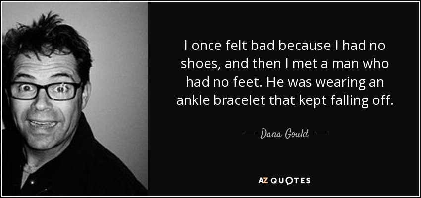 I once felt bad because I had no shoes, and then I met a man who had no feet. He was wearing an ankle bracelet that kept falling off.