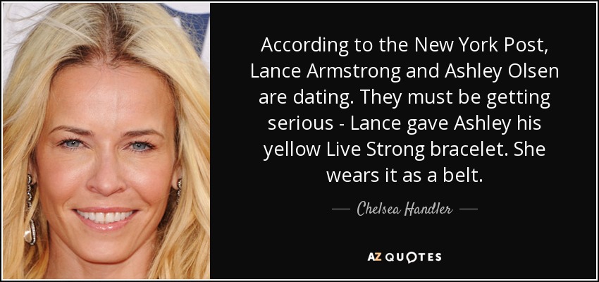 According to the New York Post, Lance Armstrong and Ashley Olsen are dating. They must be getting serious - Lance gave Ashley his yellow Live Strong bracelet. She wears it as a belt.