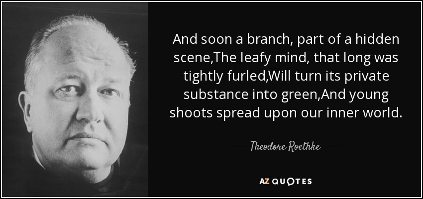 And soon a branch, part of a hidden scene,The leafy mind, that long was tightly furled,Will turn its private substance into green,And young shoots spread upon our inner world.