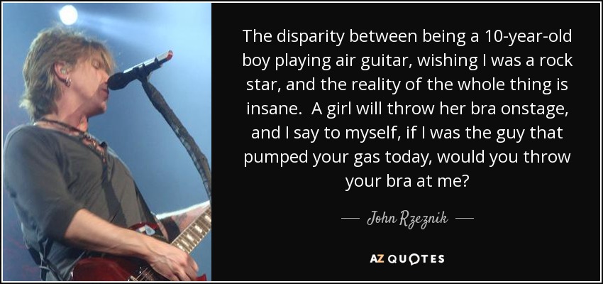 The disparity between being a 10-year-old boy playing air guitar, wishing I was a rock star, and the reality of the whole thing is insane. A girl will throw her bra onstage, and I say to myself, if I was the guy that pumped your gas today, would you throw your bra at me?