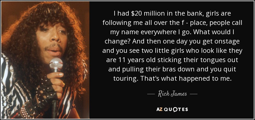 I had $20 million in the bank, girls are following me all over the f - place, people call my name everywhere I go. What would I change? And then one day you get onstage and you see two little girls who look like they are 11 years old sticking their tongues out and pulling their bras down and you quit touring. That's what happened to me.
