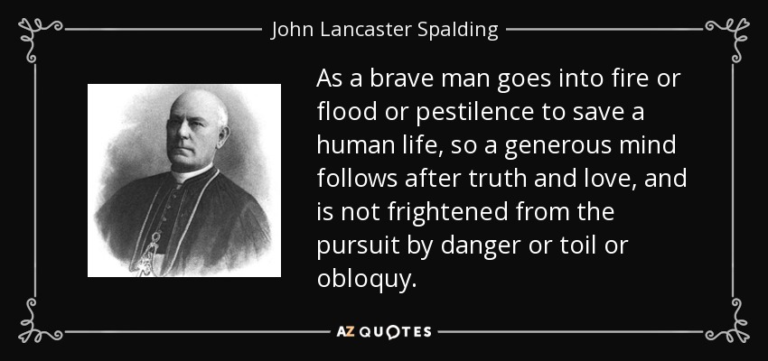As a brave man goes into fire or flood or pestilence to save a human life, so a generous mind follows after truth and love, and is not frightened from the pursuit by danger or toil or obloquy.