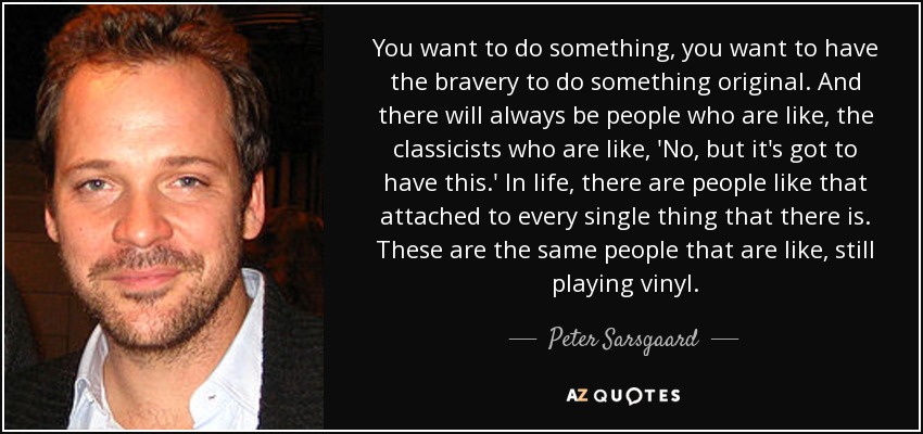 You want to do something, you want to have the bravery to do something original. And there will always be people who are like, the classicists who are like, 'No, but it's got to have this.' In life, there are people like that attached to every single thing that there is. These are the same people that are like, still playing vinyl.