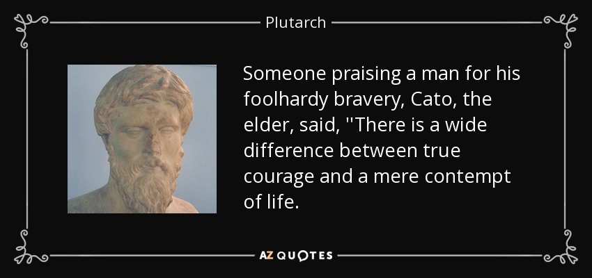 Someone praising a man for his foolhardy bravery, Cato, the elder, said, ''There is a wide difference between true courage and a mere contempt of life.