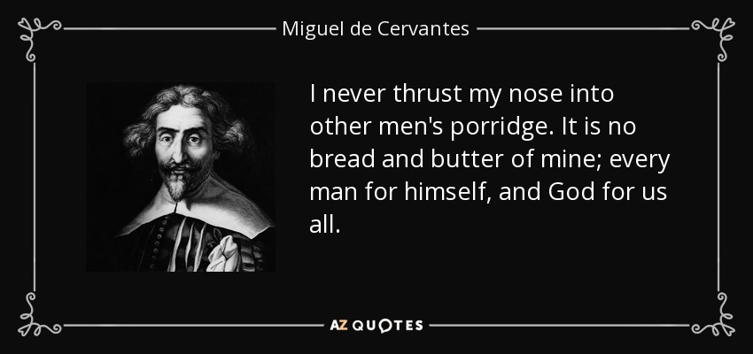 I never thrust my nose into other men's porridge. It is no bread and butter of mine; every man for himself, and God for us all.