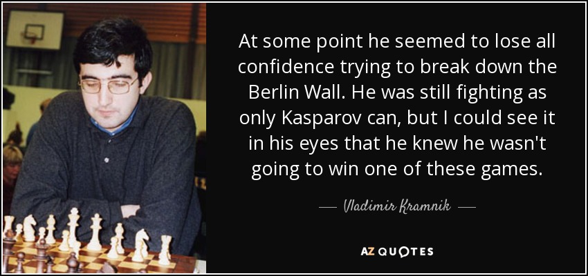At some point he seemed to lose all confidence trying to break down the Berlin Wall. He was still fighting as only Kasparov can, but I could see it in his eyes that he knew he wasn't going to win one of these games.