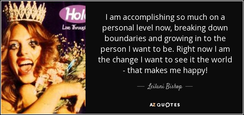 I am accomplishing so much on a personal level now, breaking down boundaries and growing in to the person I want to be. Right now I am the change I want to see it the world - that makes me happy!