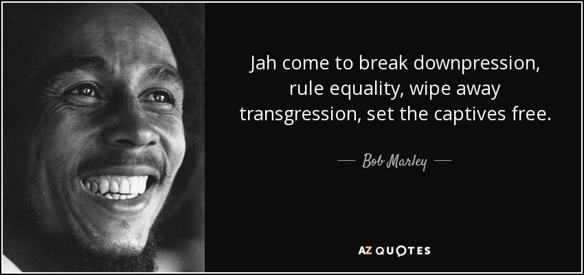 Jah come to break downpression, rule equality, wipe away transgression, set the captives free.