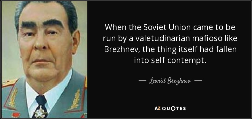 When the Soviet Union came to be run by a valetudinarian mafioso like Brezhnev, the thing itself had fallen into self-contempt.