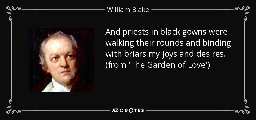 And priests in black gowns were walking their rounds and binding with briars my joys and desires. (from 'The Garden of Love')