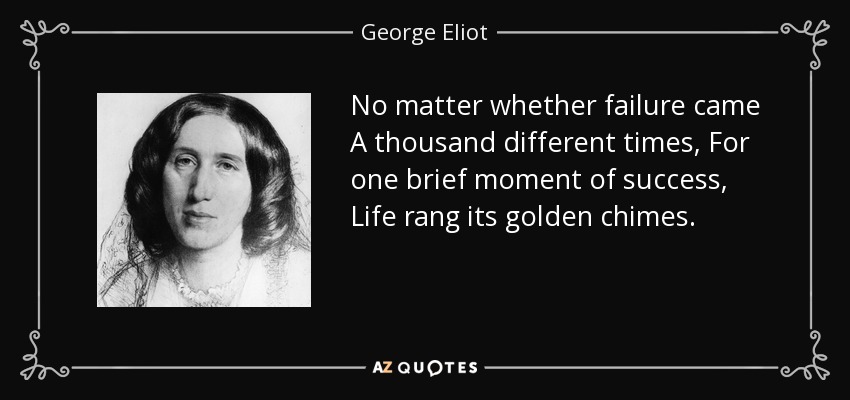 No matter whether failure came A thousand different times, For one brief moment of success, Life rang its golden chimes.