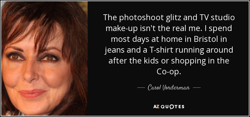 The photoshoot glitz and TV studio make-up isn't the real me. I spend most days at home in Bristol in jeans and a T-shirt running around after the kids or shopping in the Co-op.