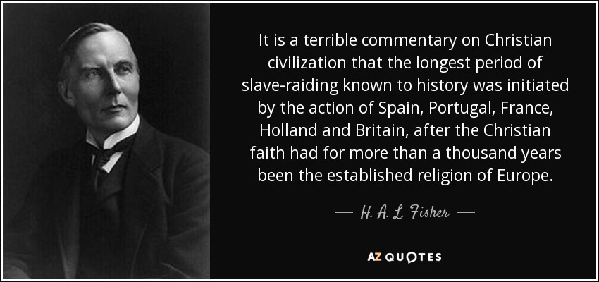 It is a terrible commentary on Christian civilization that the longest period of slave-raiding known to history was initiated by the action of Spain, Portugal, France, Holland and Britain, after the Christian faith had for more than a thousand years been the established religion of Europe.