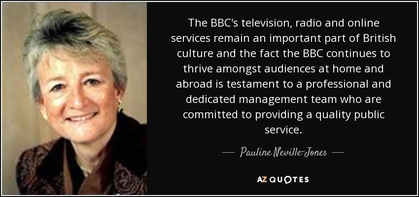 The BBC's television, radio and online services remain an important part of British culture and the fact the BBC continues to thrive amongst audiences at home and abroad is testament to a professional and dedicated management team who are committed to providing a quality public service.