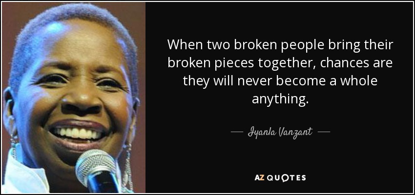 When two broken people bring their broken pieces together, chances are they will never become a whole anything.