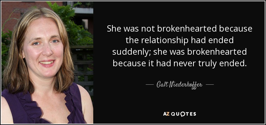 She was not brokenhearted because the relationship had ended suddenly; she was brokenhearted because it had never truly ended.