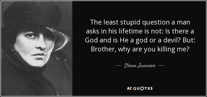 The least stupid question a man asks in his lifetime is not: Is there a God and is He a god or a devil? But: Brother, why are you killing me?