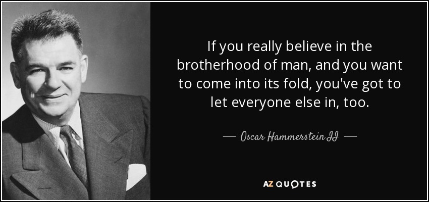 If you really believe in the brotherhood of man, and you want to come into its fold, you've got to let everyone else in, too.
