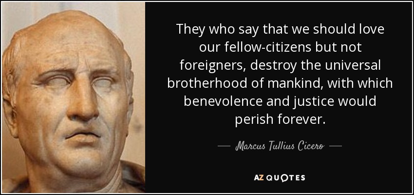 They who say that we should love our fellow-citizens but not foreigners, destroy the universal brotherhood of mankind, with which benevolence and justice would perish forever.