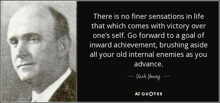 There is no finer sensations in life that which comes with victory over one's self. Go forward to a goal of inward achievement, brushing aside all your old internal enemies as you advance.