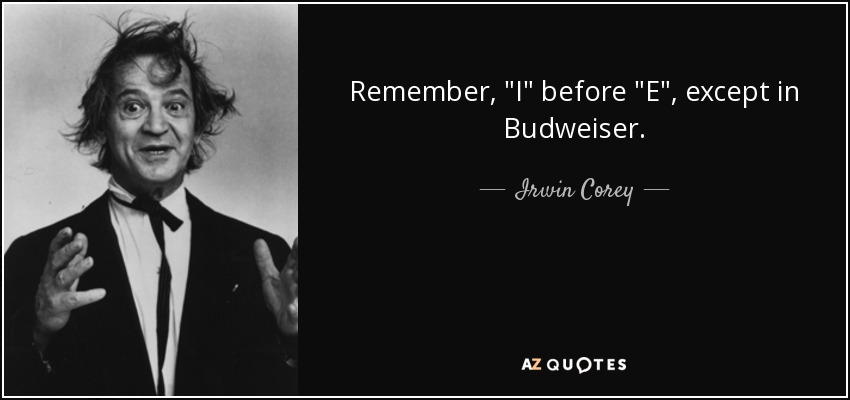 Remember, "I" before "E", except in Budweiser.