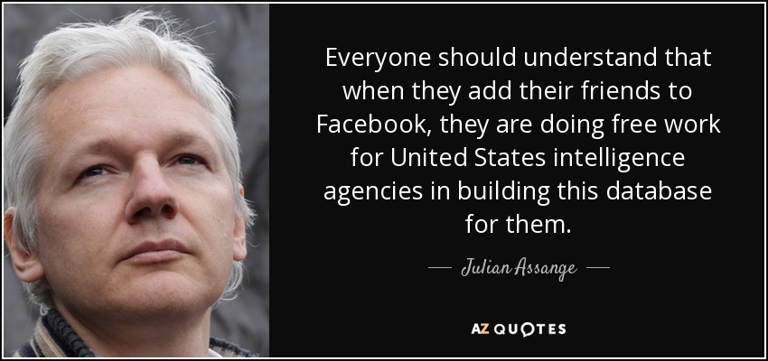 Everyone should understand that when they add their friends to Facebook, they are doing free work for United States intelligence agencies in building this database for them.