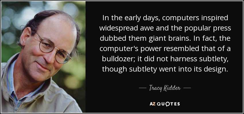 In the early days, computers inspired widespread awe and the popular press dubbed them giant brains. In fact, the computer's power resembled that of a bulldozer; it did not harness subtlety, though subtlety went into its design.