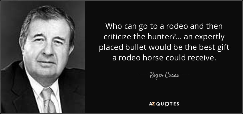 Who can go to a rodeo and then criticize the hunter? ... an expertly placed bullet would be the best gift a rodeo horse could receive.