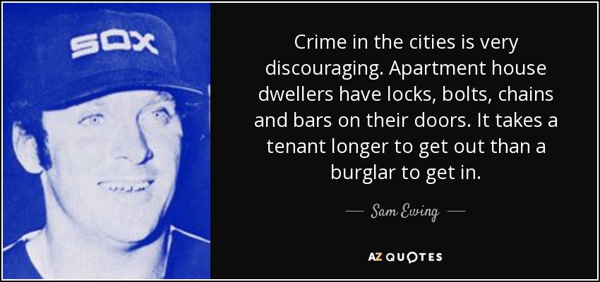 Crime in the cities is very discouraging. Apartment house dwellers have locks, bolts, chains and bars on their doors. It takes a tenant longer to get out than a burglar to get in.