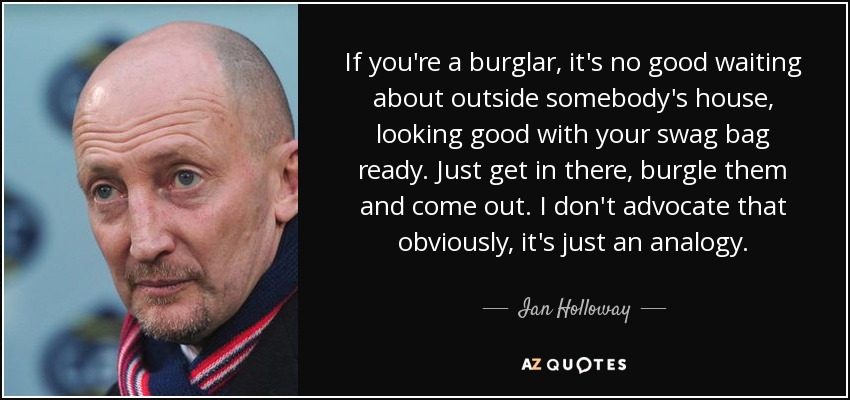 If you're a burglar, it's no good waiting about outside somebody's house, looking good with your swag bag ready. Just get in there, burgle them and come out. I don't advocate that obviously, it's just an analogy.