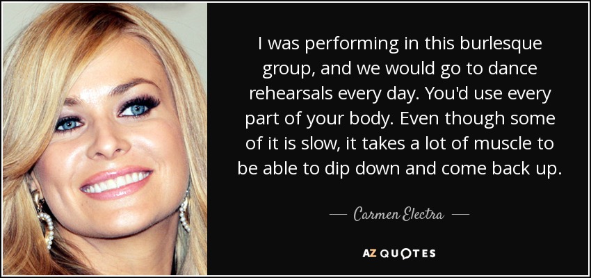 I was performing in this burlesque group, and we would go to dance rehearsals every day. You'd use every part of your body. Even though some of it is slow, it takes a lot of muscle to be able to dip down and come back up.
