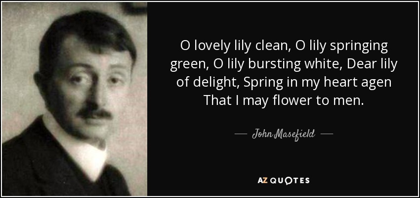 O lovely lily clean, O lily springing green, O lily bursting white, Dear lily of delight, Spring in my heart agen That I may flower to men.