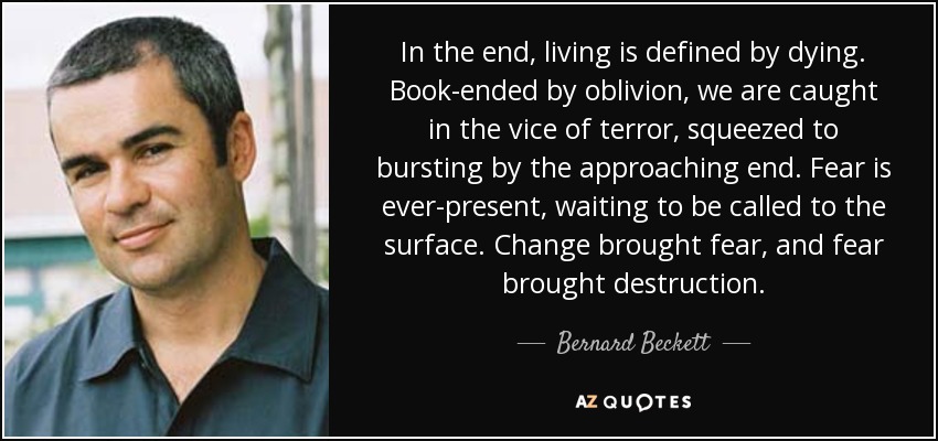 In the end, living is defined by dying. Book-ended by oblivion, we are caught in the vice of terror, squeezed to bursting by the approaching end. Fear is ever-present, waiting to be called to the surface. Change brought fear, and fear brought destruction.